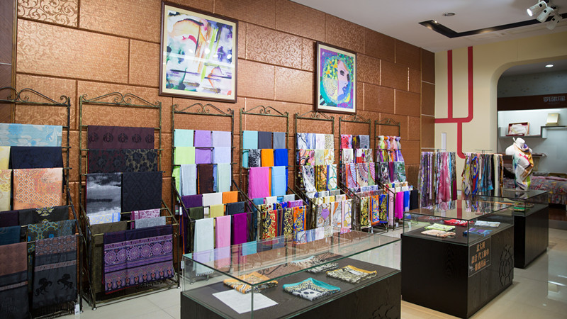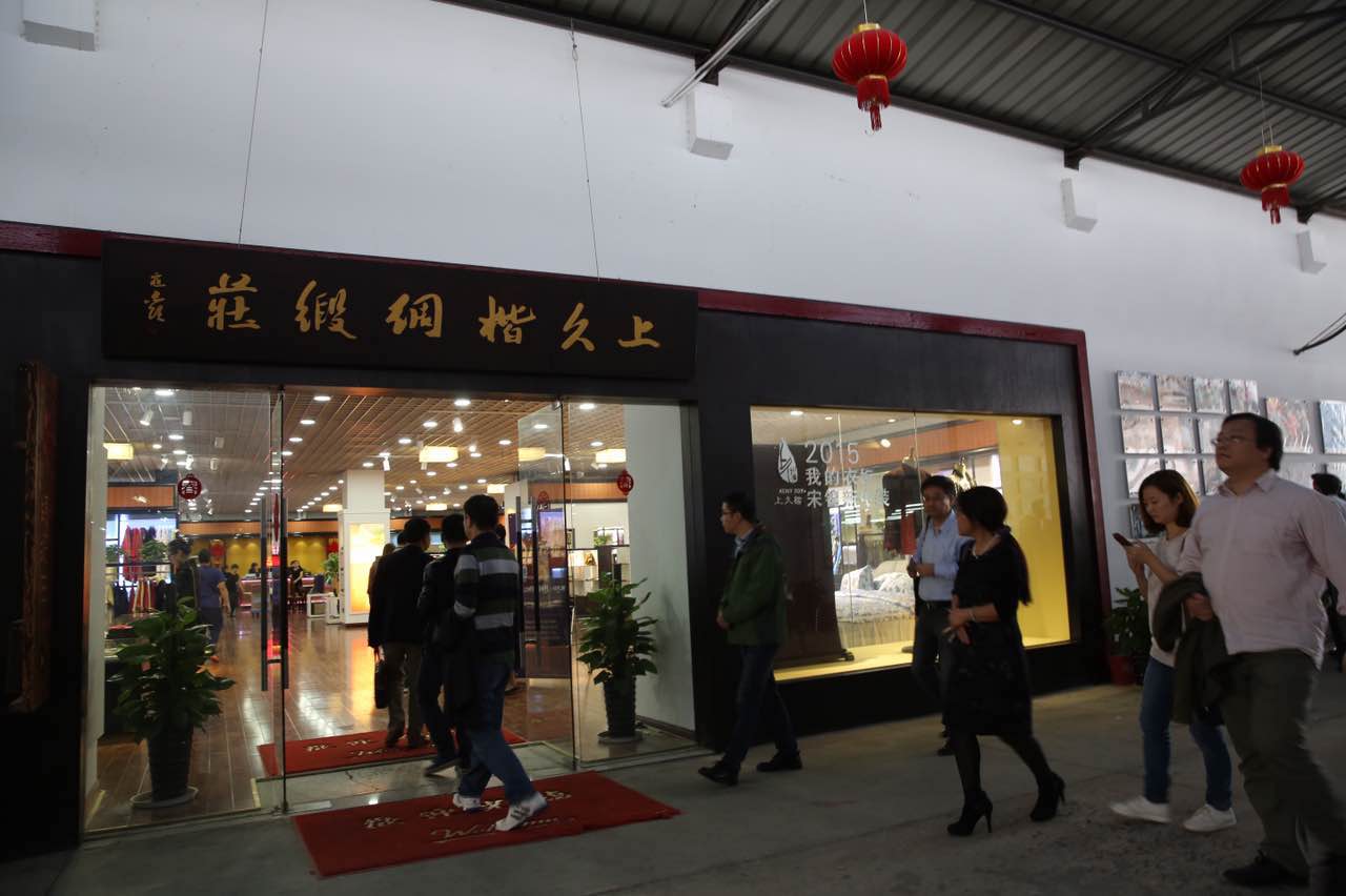 抵達盛澤后,蘇豪傳媒單鳳艷副總經理帶隊參展商參觀非遺宋錦館,零距離觸摸APEC領袖風采,分享國禮之尊。隨后參觀了先蠶祠、華佳絲博園,了解綢都絲韻水鄉,感受中國紡織名鎮,流行面料發布基地對絲綢的膜拜。