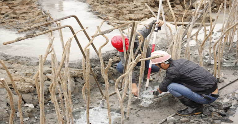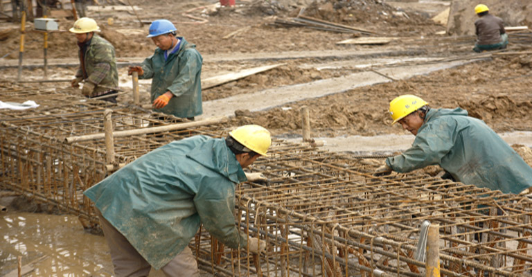 愛濤文化創意中心項目部對進度的高度重視,只要有工作面,無論雨下多大,現場都不停工,工人們冒著大雨,穿著雨衣雨褲綁扎鋼筋、支模板等,在這種條件下硬是澆筑了第一道支撐的70%工作量。