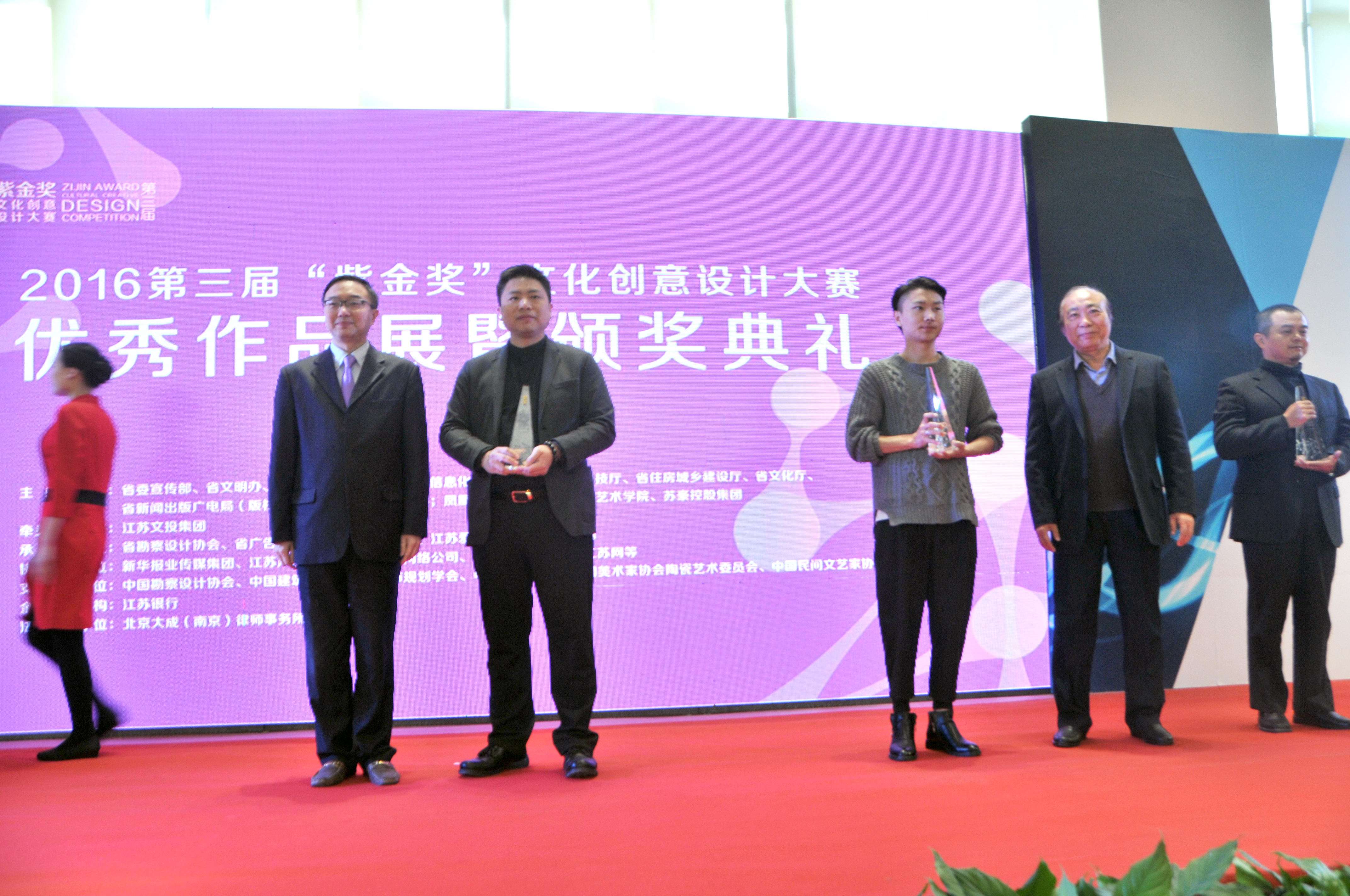11月11日,第三屆“紫金獎”文化創(chuàng)意設計大賽優(yōu)秀作品展暨頒獎典禮在南京河西新城紫金文創(chuàng)園舉行。大賽由江蘇省委宣傳部、江蘇省蘇豪控股集團等14家單位聯(lián)合主辦,江蘇文投集團牽頭承辦,江蘇愛濤文化產(chǎn)業(yè)有限公司具體承辦現(xiàn)代手工藝設計大賽暨優(yōu)秀作品展。蘇豪控股集團總裁出席頒獎典禮,并為現(xiàn)代手工藝設計大賽金獎獲得者頒獎。