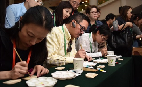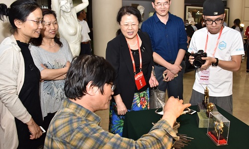 5月18日下午,作為“藝海流金·精彩江蘇”活動的一個重要組成部分,“藝海流金——吳楚風韻江蘇省非物質文化遺產精品展”在愛濤藝術中心隆重舉辦。中央政府駐香港聯絡辦宣傳文體部部長朱文率領的香港訪團、澳門基金會行政委員會主席吳志良率領的澳門訪團等一行上百人在江蘇省文化廳黨組成員、江蘇文化聯誼會副會長劉愛華的帶領下參觀此次展覽。愛濤文化集團董事長張發松、常務副總經理陳云梅接待訪團。