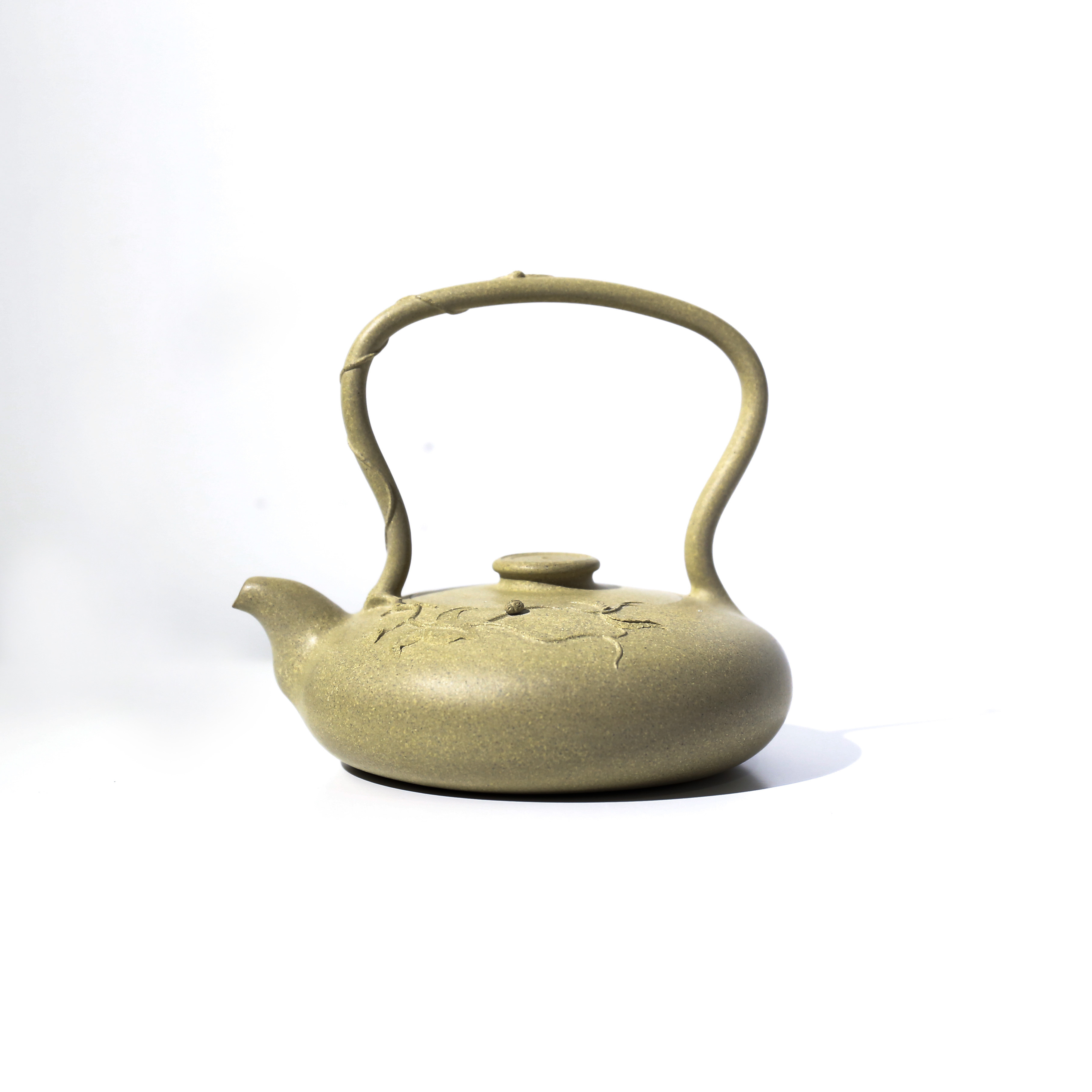 此作品名為暗香,靈感來(lái)源于李清照《醉花陰》:“東籬把酒黃昏后,有暗香盈袖”。壺把上緩緩纏繞的藤蔓,猶如悠悠茶香四溢彌漫。壺身如一位婀娜柔美的女子,上面拾綴著花兒,只在暗處散發(fā)著清香。小花上停歇著一只瓢蟲,它爬上細(xì)細(xì)的藤蔓。作品整體呈現(xiàn)出一種自由自在的田園風(fēng)光,貼近實(shí)際生活,給人心曠神怡的感覺。